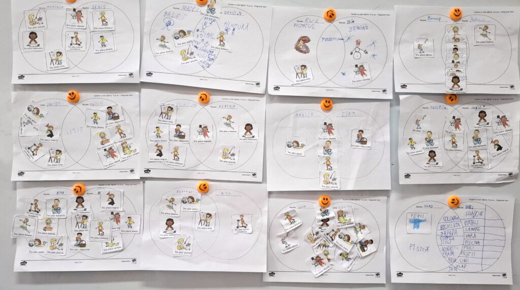 With the help of a PPT and a discussion based on the text, the students discovered similarities and differences between people, then each team made a Venn Diagram, where they placed what they like and what they don’t like.